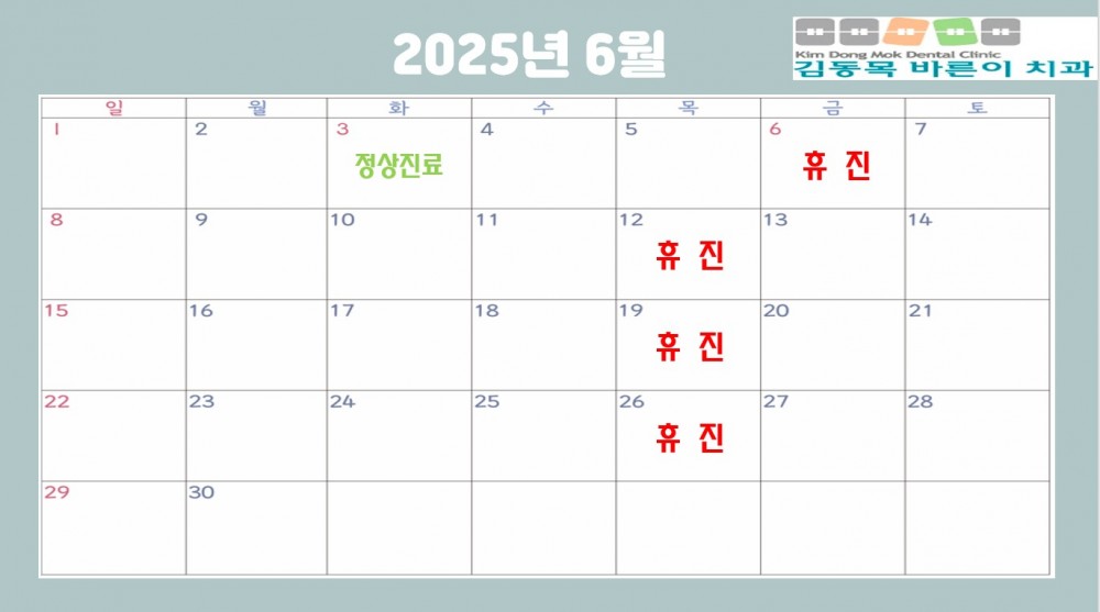 2025년 6월 진료안내입니다. 페이지 정보 작성자 김동목바른이치과 작성일25-05-19 10:08 조회1,079회 댓글0건 관련링크 이전글 다음글 목록 본문 2025년 6월 진료안내입니다. 댓글목록 등록된 댓글이 없습니다. 이전글 다음글 목록