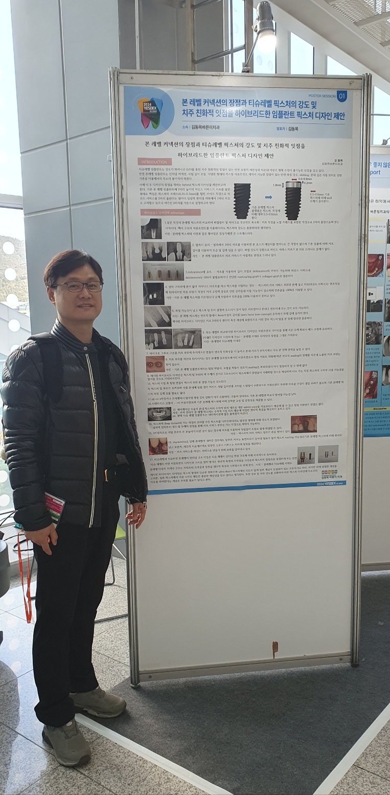 티슈레벨과 본 레벨 임플란트의 장점을 통합하여 기존의 문제점과 불편 사항을 개선하고자 아이디어를 포스터로 만들어 전시하였습니다.